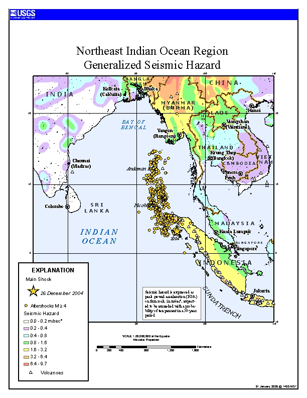 ![]() Die Karte des USGS zeigt das Seebeben vom 26.12.2004 und die Vulkane auf der Insel Sumatra. ![]() Lage des Toba (Volcano World)  |