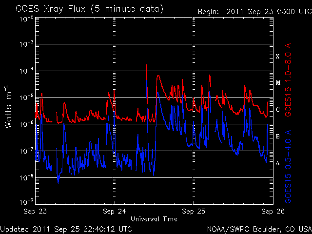 No.05/2011: 26./27. September 2011 ![]() © by Stefan Schwager, Sternwarte Riesa e.V. | Nach einem starken und länger andauernden Ausbruch der Stärke M7 vom 24. September 2011 auf der Sonne machte sich ein coronaler Massenauswurf auf den Weg in Richtung Erde. Die zugehörige Schockfront erreichten am 26. Oktober gegen 13:51 Uhr MESZ den ACE-Satelliten und wenig später auch das Erdmagnetfeld. In der Nacht zum 27.09. konnte in vielen Teilen Mitteleuropas Polarlicht beobachtet werden. Animation vom X1.9 am 24.09.2011 gegen 11:40 MESZ (Polarlicht-Forum) CME Schock Impakt und PL-Sichtungen - 26.09.2011 (Polarlicht-Forum) Middle Latitude Auroral Activity WARNING, 26.09.11 (Polarlicht-Forum) Polarlicht am 26.09.2011 - Zusammenfassung (Polarlicht-Forum) Links zu Fotos und Sichtungen der Polarlichter: Bersenbrück bei Fürstenwalde (Andreas Möller) Grünberg, Mittelhessen, Zeitraffer von Jonas Piontek (YouTube) Beobachtung in Riesa, Sachsen (Sternwarte Riesa e.V. Medienmeldungen: Polarlichter über Deutschland (Sterne und Weltraum, 27.09.2011) |