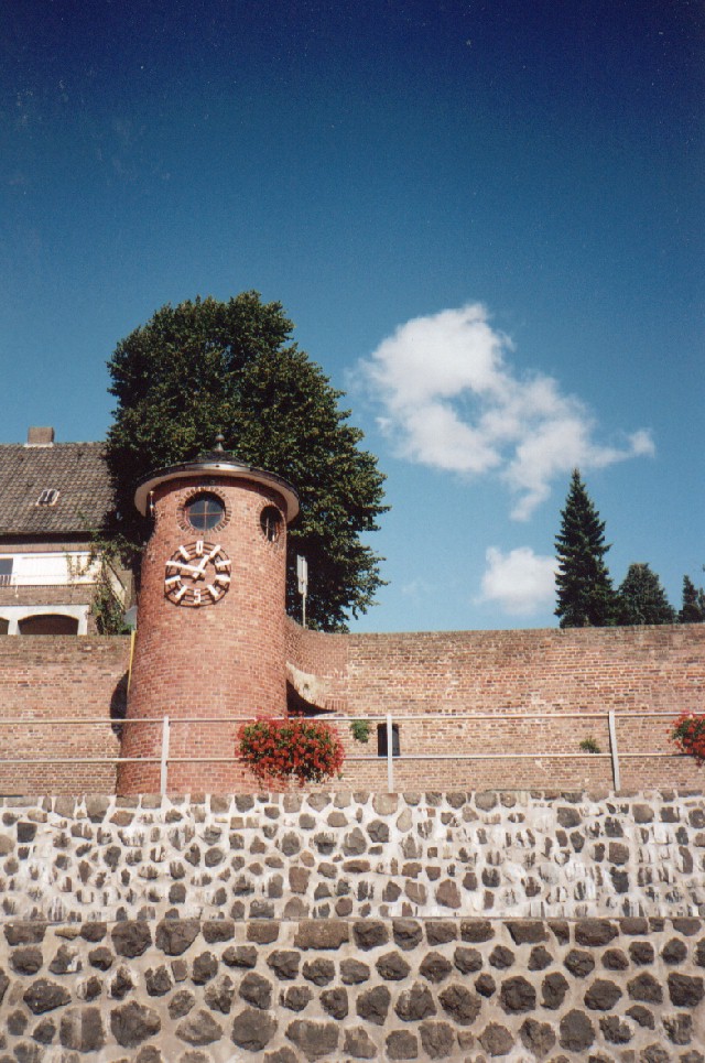 Der Pegelturm mit der Pegeluhr befindet sich direkt an der Promenade in Rees.